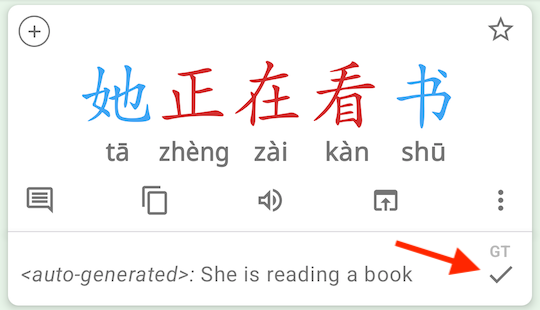 When viewing the sentence in the details screen, use the “tick” button to convert the translation to a note:
